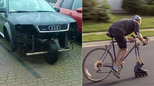 groundzeroweb.comMemanfaatkan kereta dorong supermarket penganti roda depan. Jeniusnya tingkat dewa!