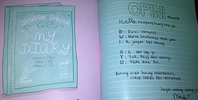 Masih ingat gak kata-kata paling konyol apa yang pernah kamu tuliskan di buku diary punya temanmu?