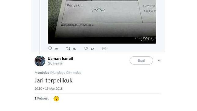 (Foto: Juriglagu/Twitter via Brilio.net)Nah, bagaimana menurut kamu, apa yang ditulis dokter pada kolom penyakit tersebut?